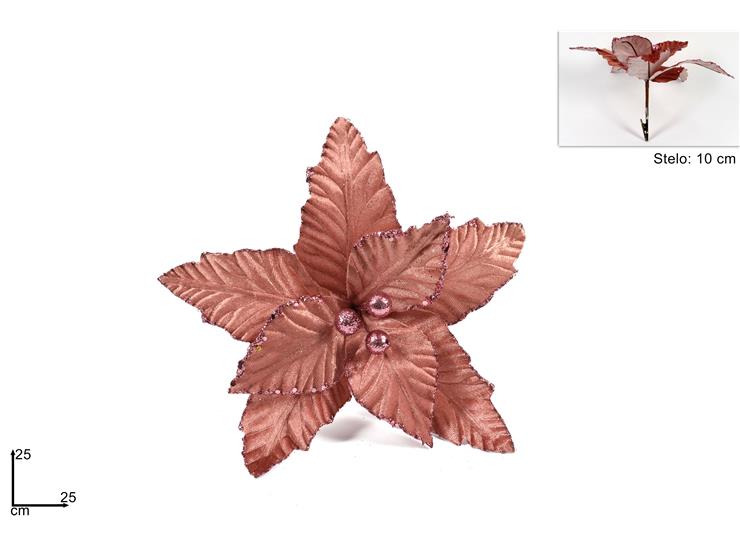 PINZONE POINSETTIA VELLUTO 25CM C/GLITTER ROSA ANTICO BMA-51A/OLD PINK