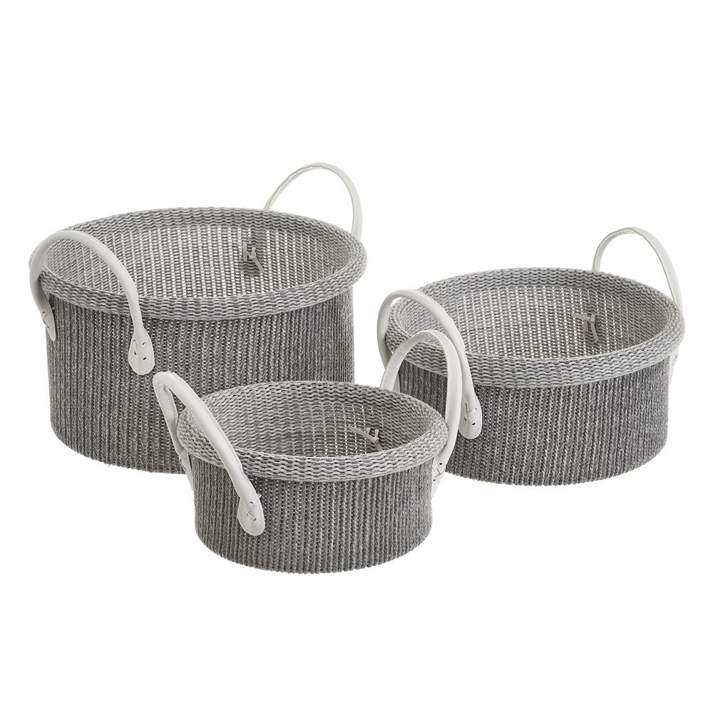 801355 CESTO POLIESTER CINZA SET 3 33X30X18CM
