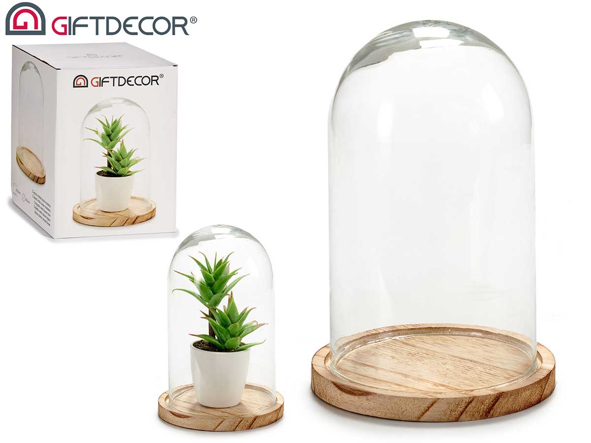 88357 CUPULA VIDRO BASE MADEIRA 28CM