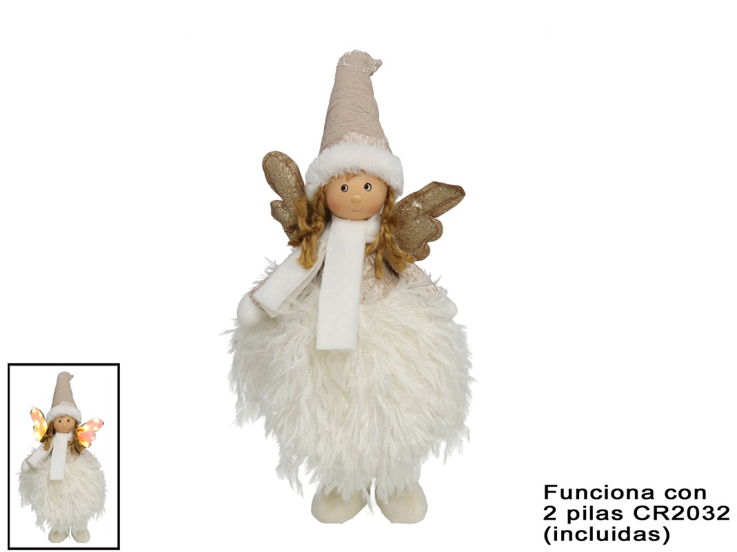 5409 ANJO BRANCO C/ASAS OURO 12LUZES CALDAS 48X14X11CM