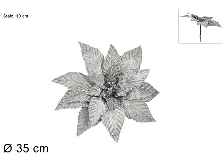 PINZONE POINSETTIA VELLUTO 35CM SILVER