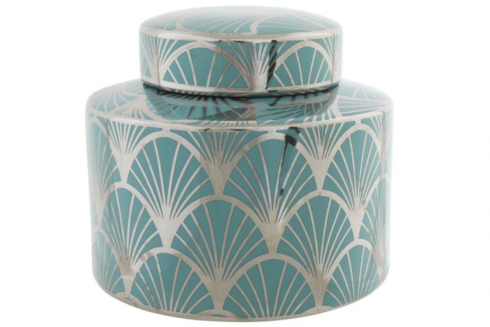 LD-182504 JARRO PORCELANA 18X18X16 CROMADO TURQUESA