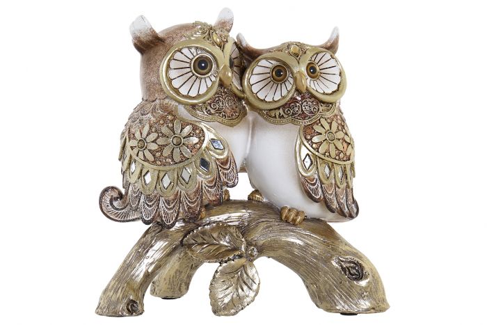 RF-181280 FIG RESINA 17X8X17 CORUJAS DOURADO