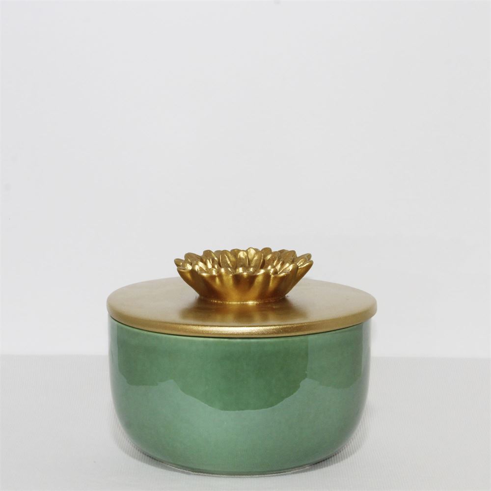 Z62C CAIXA CERAMICA VERDE TAMPA FLOR 14CM